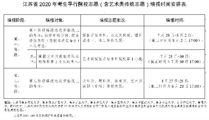 1、7月28日至8月2日(截止到17:00),填报第一阶段志愿。本阶段填报文科类、理科类提前批次本科院校;体育类、艺术类提前录取本科院校;文科类、理科类本科第一、二批院校志愿。其中,填报艺术类提前录取本科第1小批院校志愿的考生,必须于7月30日17:00前完成填报